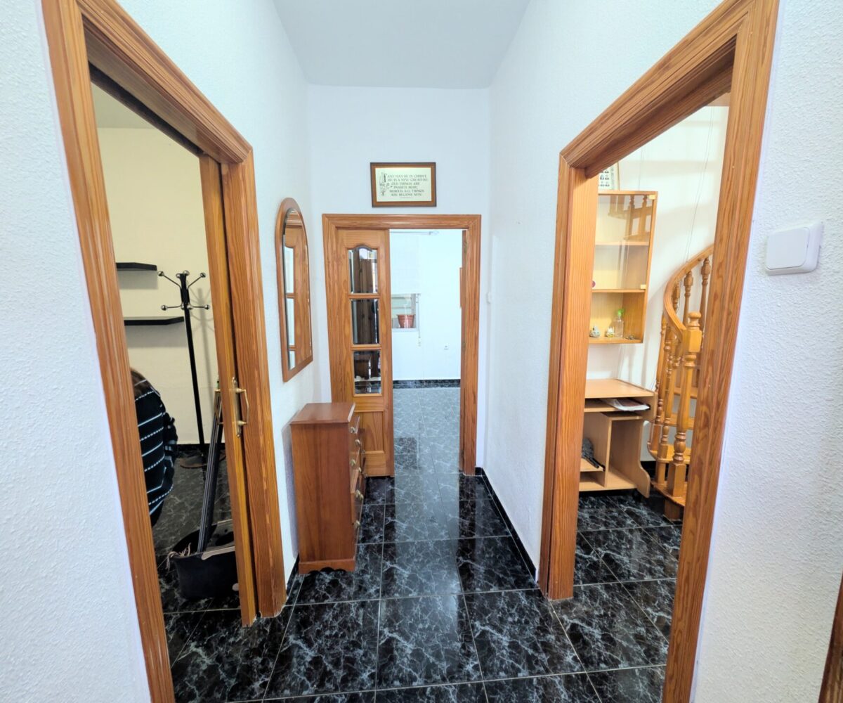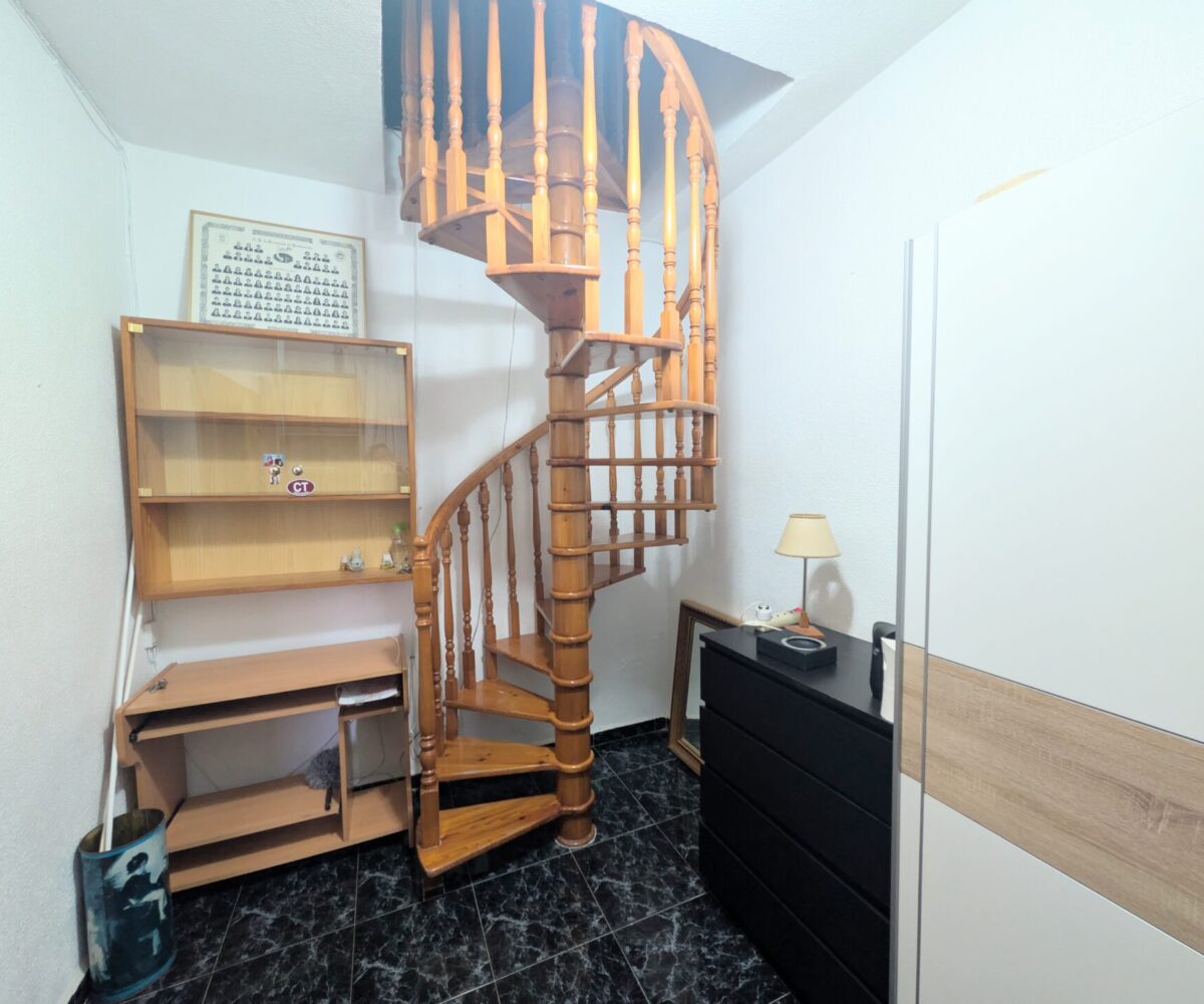 para familias que buscan comodidad y estilo. La planta baja cuenta con un acogedor recibidor, dos luminosos dormitorios (uno de ellos con escalera de caracol con acceso a 1ª planta, un salón comedor que invita a relajarse y una cocina independiente con acceso a un patio interior techado y una 2ª escalera con otro acceso a 1ª planta. Además, hay un baño en esta planta que añade funcionalidad.